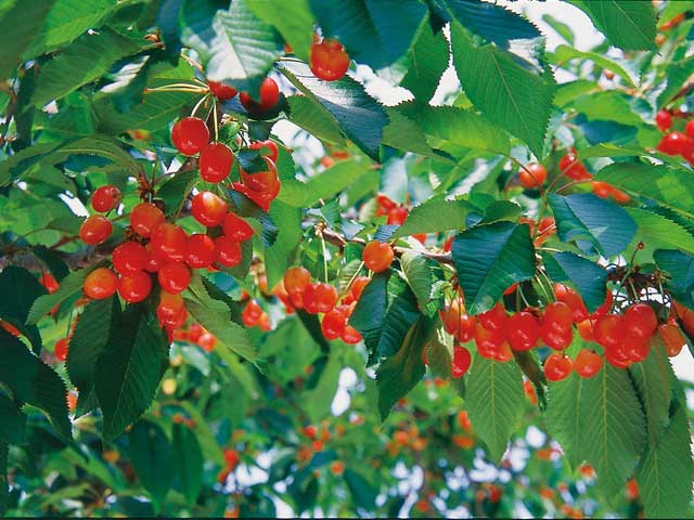 約1200坪の敷地に、佐藤錦、紅秀峰を中心とした数種類のさくらんぼがたわわに実る。低農薬栽培で育った果実は風味豊か。家庭的なもてなしが喜ばれ、毎年訪れる常連客も多い。
