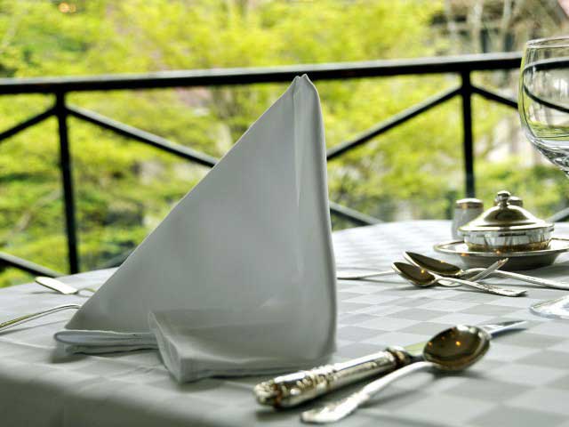 カラマツ林に囲まれた閑静なホテル。客室はベージュを基調にしたインテリアを用いたヨーロピアン調。味に定評のあるフランス料理のレストランもある。