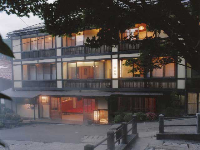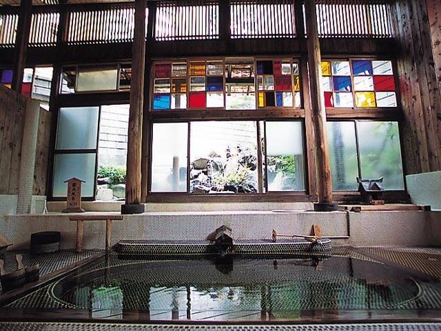 麻釜熱湯湧泉が目の前。築140年以上の木造の本館は和風情緒たっぷりだ。風呂は明治2(1869)年に開湯した歴史ある自家源泉の湯。食事は会席料理に郷土料理の「取り回し鉢」が付く。