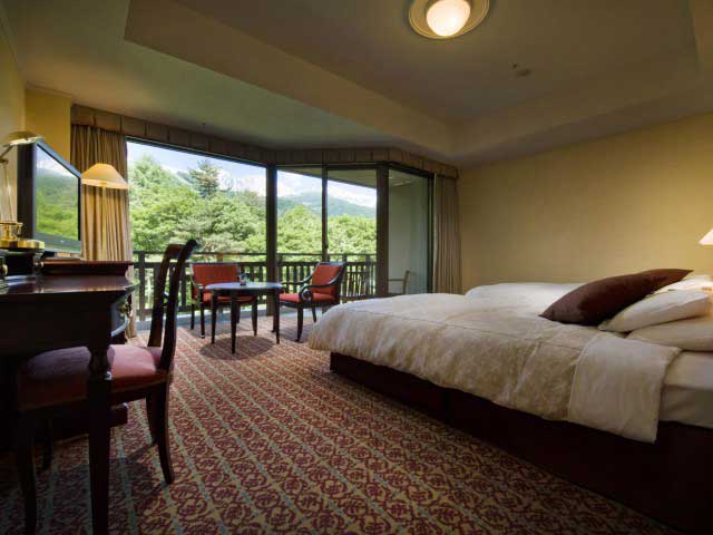 八ヶ岳のパノラマを望む源泉かけ流しの露天風呂と、全室56平米以上の広い客室を備えたリゾートホテル