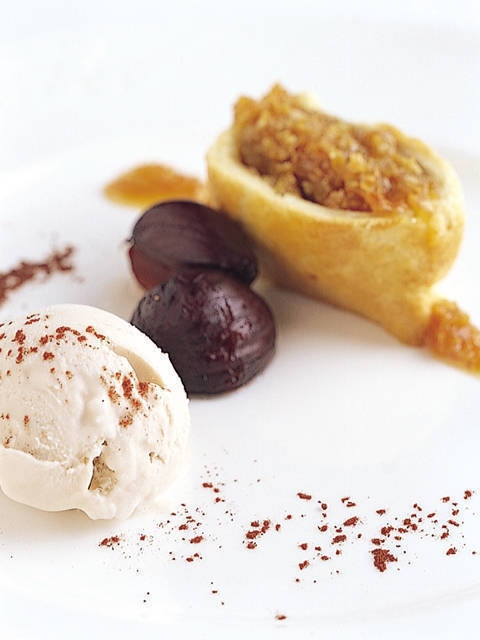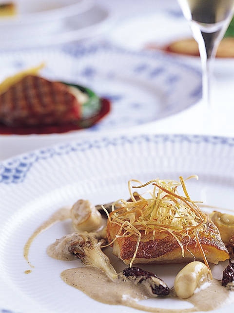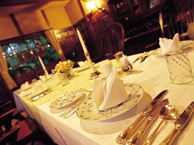 松本を代表する格調高いフランス料理店。白壁に黒い柱、松本民芸家具を配したシックな雰囲気の店内でコース料理が堪能できる。