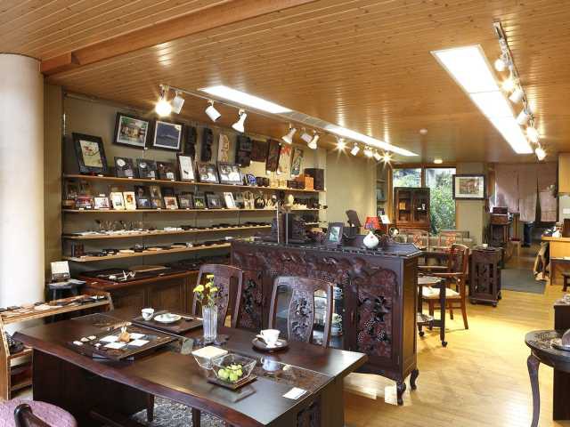 伝統ある軽井沢彫の技法を守り続ける老舗家具店。桜の花の部分をピンクに彩色した花器や貝象嵌をあしらったテーブルなど、現代の暮らしに溶け込むデザインの商品が人気。
