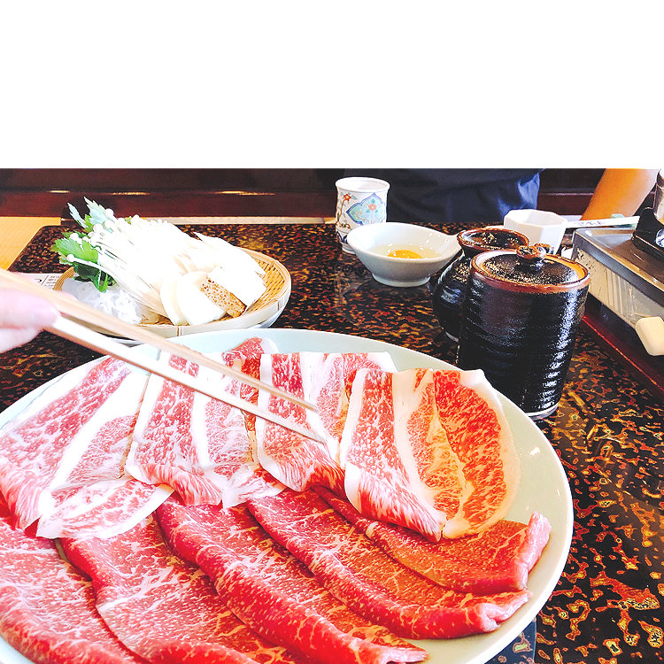 裾花川沿いにある信州牛の専門店。飼料にりんごを交ぜて飼育した牛の肉を、すき焼き、しゃぶしゃぶ、ステーキなどで味わう。ランチタイムには定食やセットメニューがある。