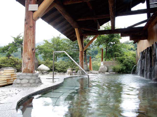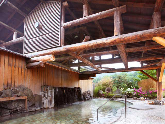 千曲川のほとり、四季折々の素朴な自然環境が美しい癒し系温泉。露天風呂は庭園風の設計で、湯量たっぷりの大きな湯船が印象的だ。地元名産の紫米を使った名物料理やスイーツもぜひ賞味したい。