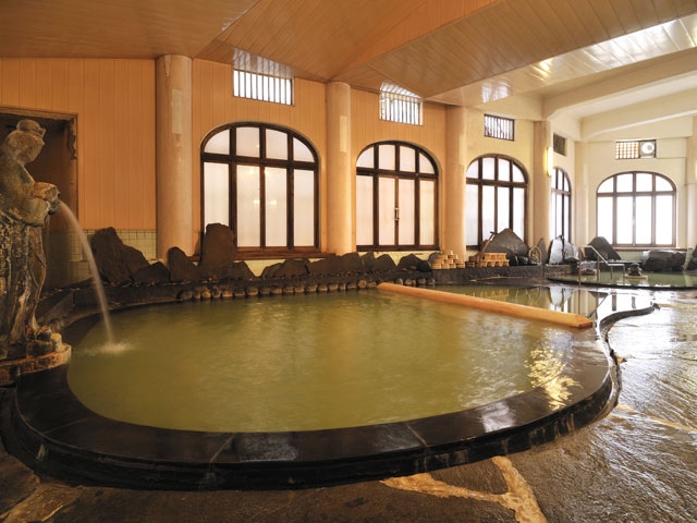 ぬる湯からあつ湯まである「千人風呂」と泉質の異なる「子宝 薬師の湯」は、両方を楽しめる男女交替制。また飲泉可能な湯は料理にも使われ、まろやかな味わいの「温泉しゃぶしゃぶ」が評判。