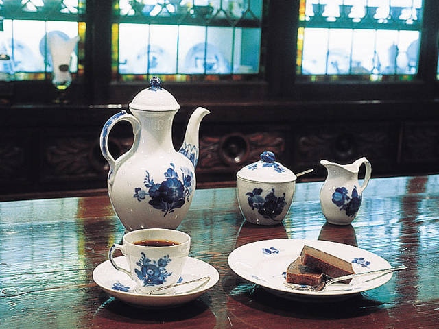 建物やロイヤルコペンハーゲンのカップがクラシカルな雰囲気をかもし出す老舗の喫茶店。コーヒーはこだわりのブレンド1種類。人気の手作りケーキとともにゆったり味わいたい。
