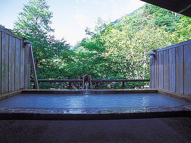 胃腸に効くという白骨温泉の湯で炊く温泉がゆが味わえる。山菜、ニジマス甘露煮、漬物、みそ汁が付いた温泉がゆ定食が人気。日帰り入浴専用の露天風呂も好評だ。