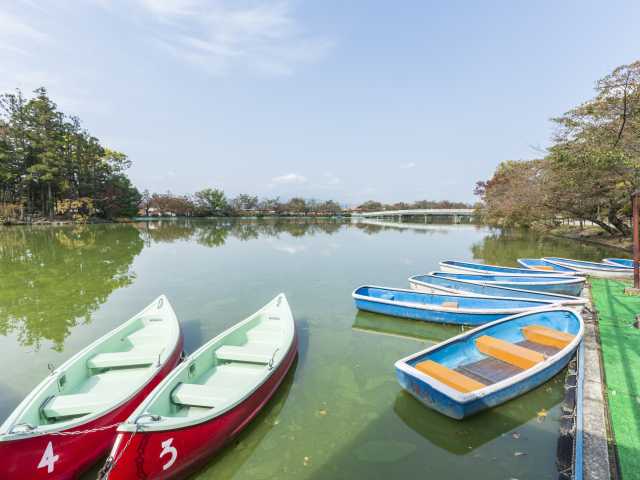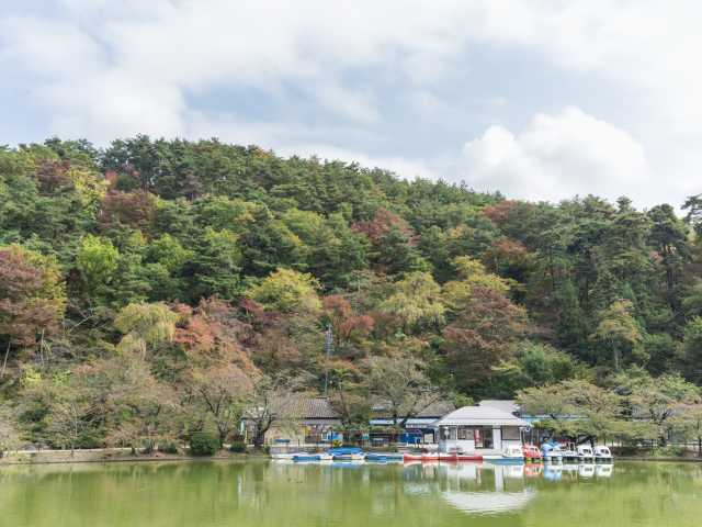 名勝臥竜山に広がる公園。竜ヶ池でのボート遊び、百々川緑地の散策などが楽しめる。遊園地や動物園、博物館なども併設。「さくら名所100選」「日本の名松・100選」に選ばれている。