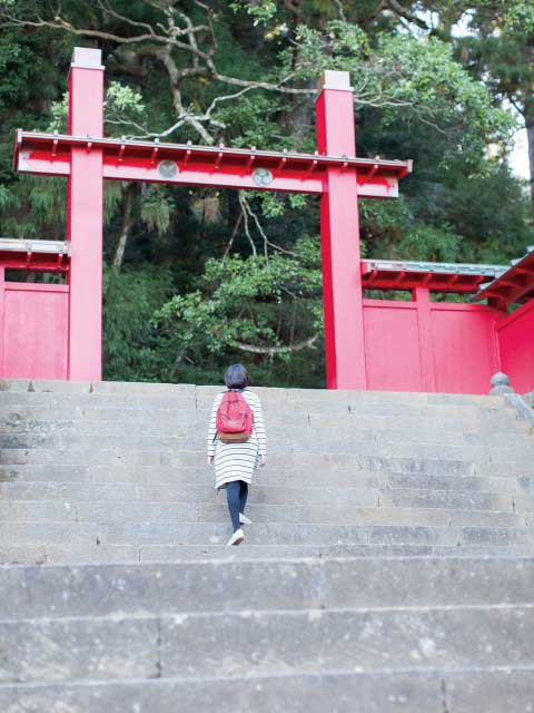 伊豆半島で最も古い神社のひとつ。パワースポットとしても知られ、境内は神秘的な雰囲気。千年杉と呼ばれるご神木をお参りしてから旅を始めよう。