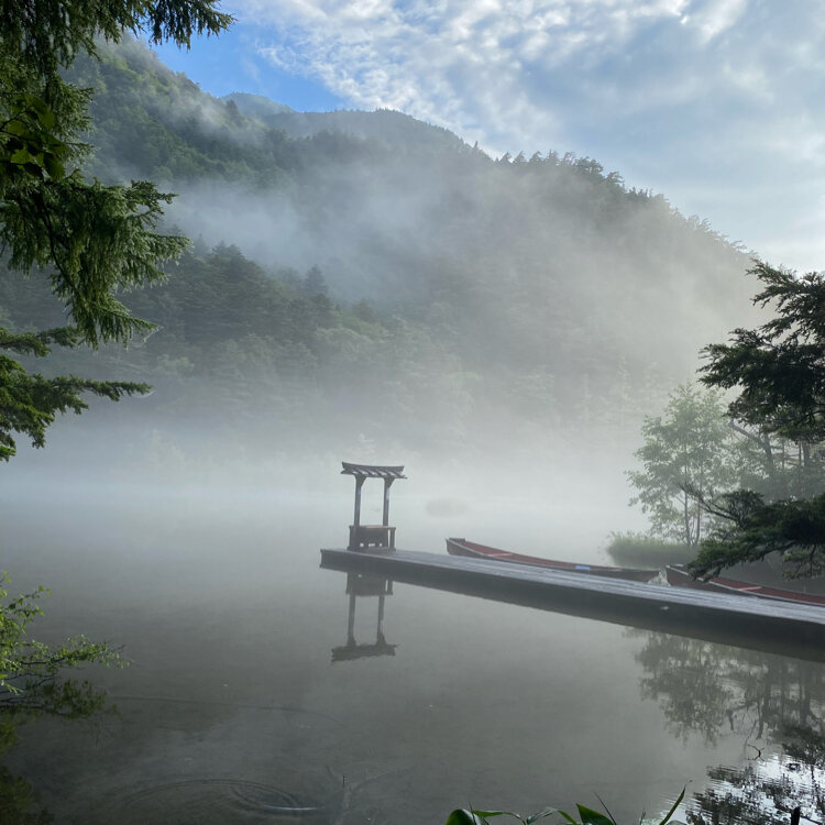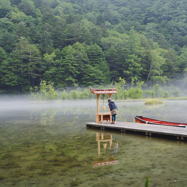 穂高神社の神域として静寂を保ち続ける池
