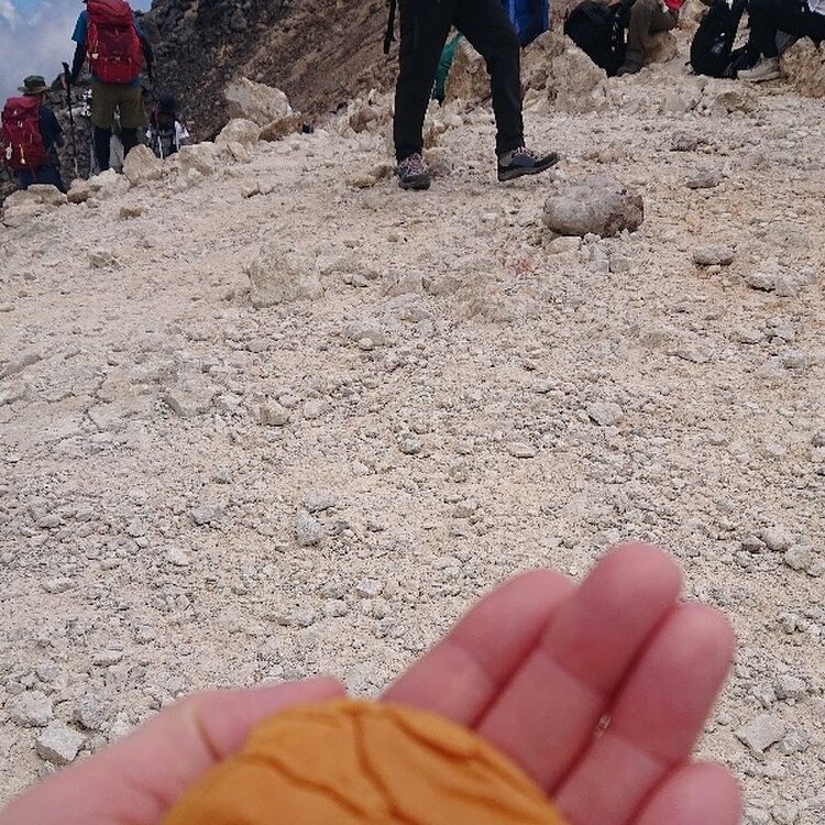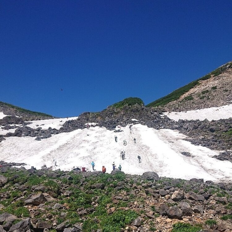 いよいよ登山当日です 久々の登山仲間との 再会でもあります。 三連休中なこともあり 道中、列車やバス予約も 満席です。 バス予約は終点までしていましたが、リーダー判断で、好天のため、肩の小屋口?から登山開始!なに?聞いてないよという気持ちで登り始めてしまいましたが、目の前には雪渓が広がります。もちろんリフトなど無いのですが、中にはそこでスキーを楽しむ猛者もいました。 やはり、3000m級 空気も若干薄いのですね。登り続きの行程、普段の運動不足もあり、なかなか息が整いません。途中、アンパンで糖分補給しつつ休憩をとります。また、足元は殆どが石で不安定。あまり周りを見ながらでは、ありませんでした。 前回登ったときは、ガスっていて、雄大な景色が望めない分、目の前の難関の怖さがなくコツコツ登りきれてしまいました。 今回は、雄大な景色は望めましたが、目の前の登りに気持ちがすくみ、まあ、混雑しているので、サクサク行けるわけでもありませんが、色々考えさせられました。 仲間のありがたさをとても感じた登山です。 今回は、残念ながら私は雷鳥は見れませんでしたが、しんがりを歩いていた仲間の一人が、雪渓の近くで目撃、写真をみせてもらいました。 #乗鞍岳