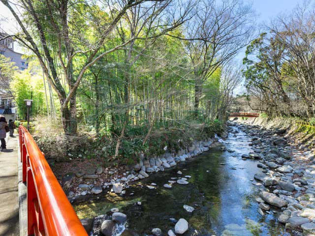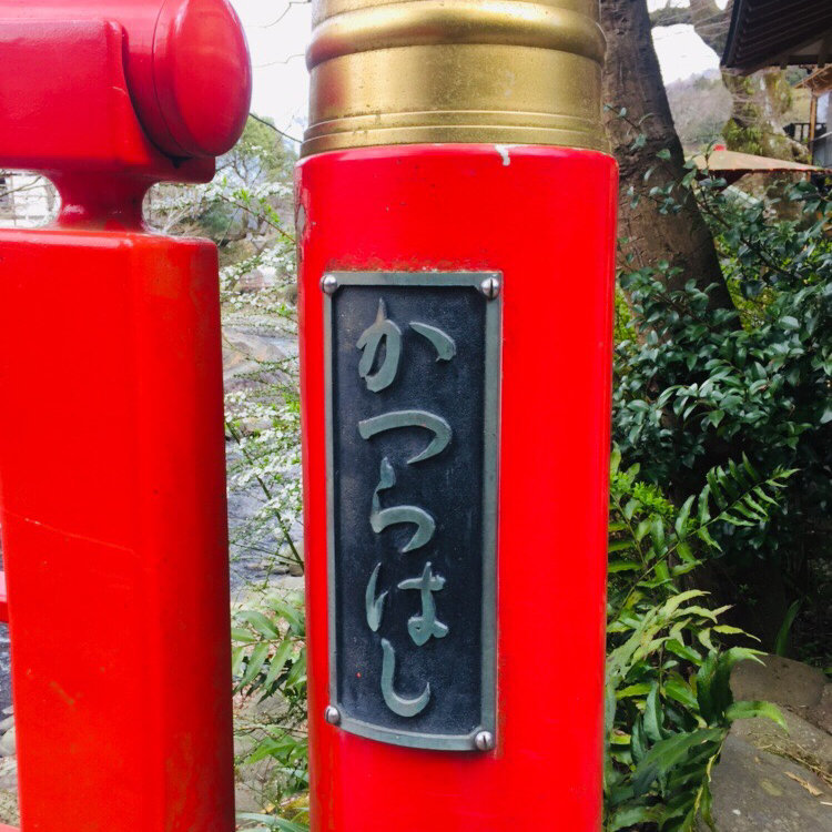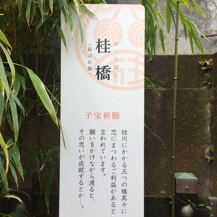 桂川にかかる朱塗りの橋。竹林の小径の全景を見渡すことができ、秋には紅葉が辺りを美しく彩る。上流には「楓橋」と「滝下橋」もある。