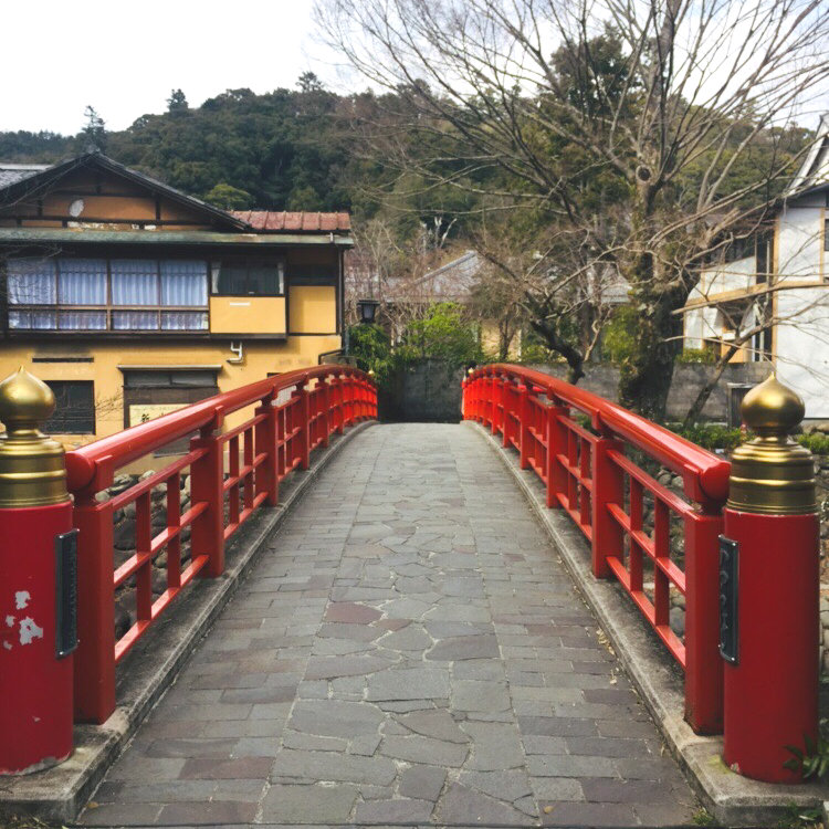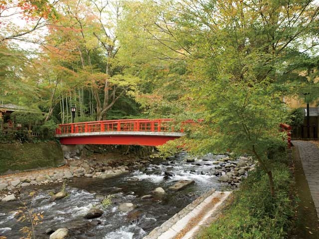 秋には紅葉が辺りを美しく彩る、朱塗りの橋
