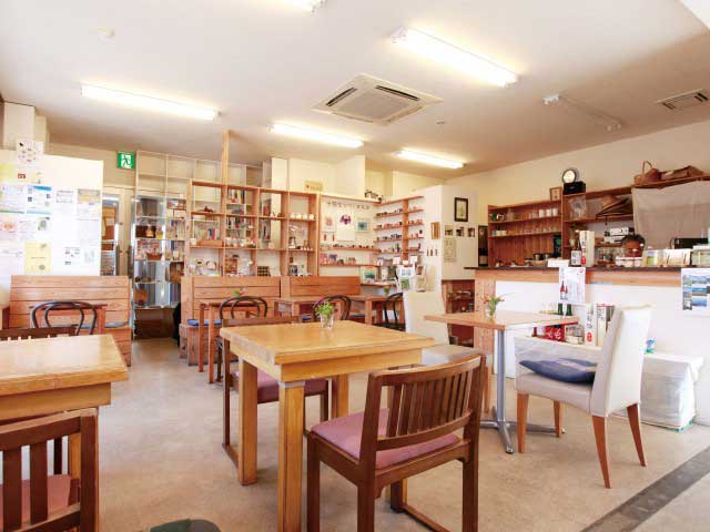 穂高駅前にあるカフェ、レンタサイクル、レンタカー、おみやげなどを扱うショップ。店内では地元作家によるクラフト品を展示・販売するほか、安曇野のおすすめスポットをガイドする情報発信カフェでもある。
