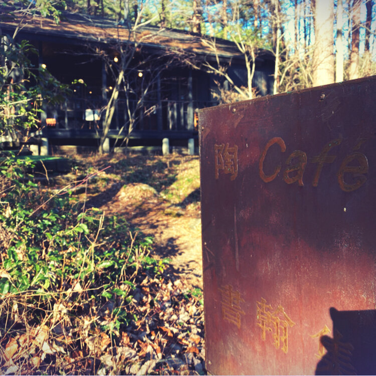 3年半かけて作り上げたというレトロ&アートな雰囲気のカフェ。通りから緑の中へと続く道に分け入っていくアプローチは、まさに森の隠れ家といった趣だ。