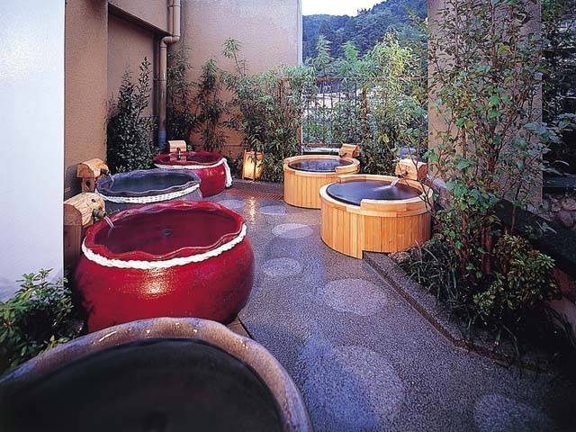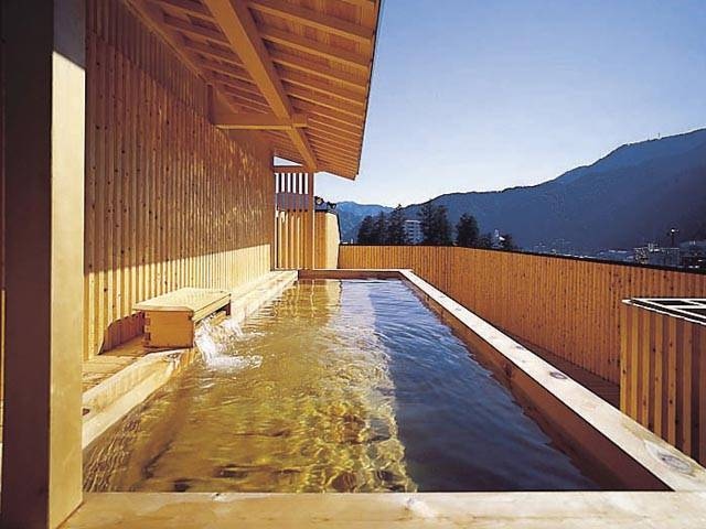 下呂温泉街の中心に建つ和の宿。浴場は展望大浴場と露天風呂があり、四季により移り変わる飛騨の山々や温泉街が一望できる。それぞれに趣向を凝らした9室の露天風呂付き客室はとくに好評だ。