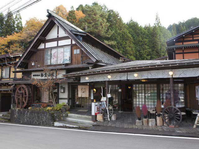 地元の陶器・和風小物・一般民芸が並ぶ売店に併設された和風茶房。中庭ではゆったりと食事や茶を飲みながら、庭の山野草を楽しめる。山野草園は散策することもできる。
