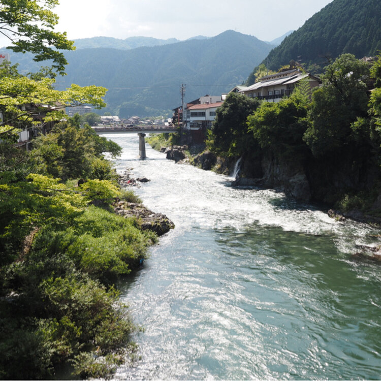 静寂とゆとり、木のぬくもり。隠れ家のような落ち着いた佇まい。温泉街から少し離れた飛騨川沿いの閑静な純和風の日本の宿です。