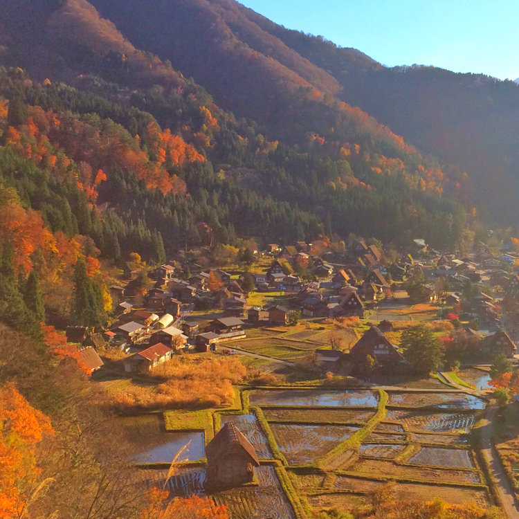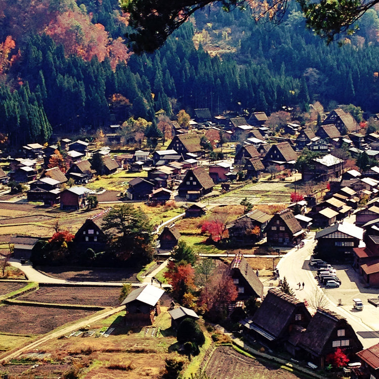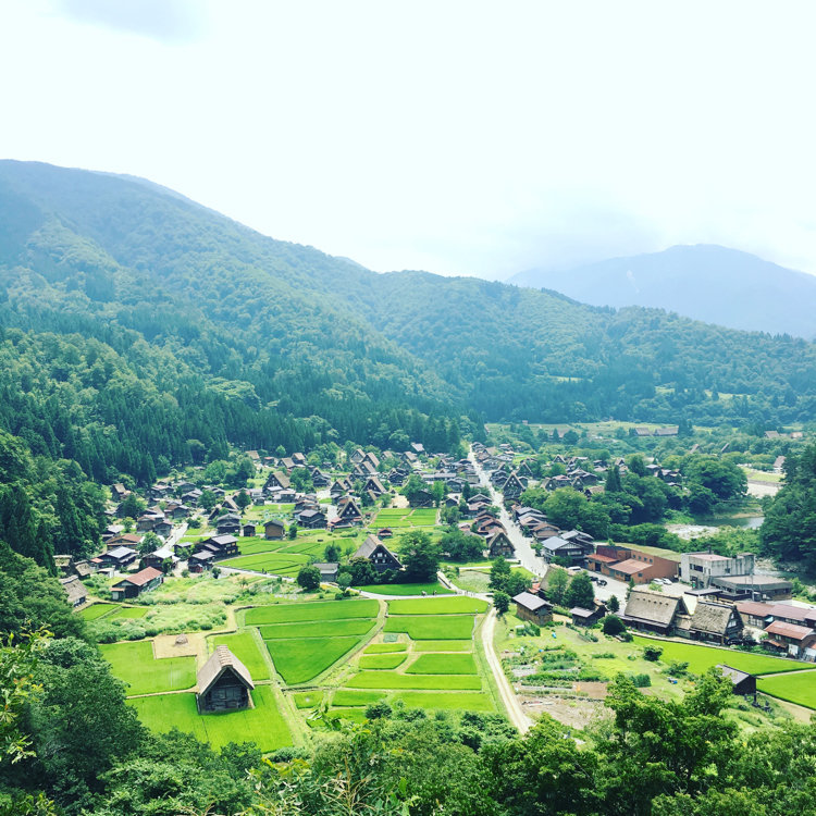 合掌造りの集落を見渡す展望台