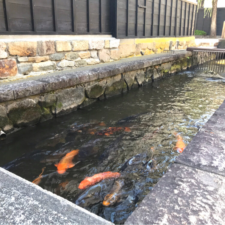 白壁土蔵の古い町家が多く残り、約500mに渡って続く、情緒豊かな散策スポット。建物の袂には瀬戸川が流れ、約1000匹もの鯉が目を楽しませてくれる。「岐阜の名水50選」にも選ばれる清流だ。