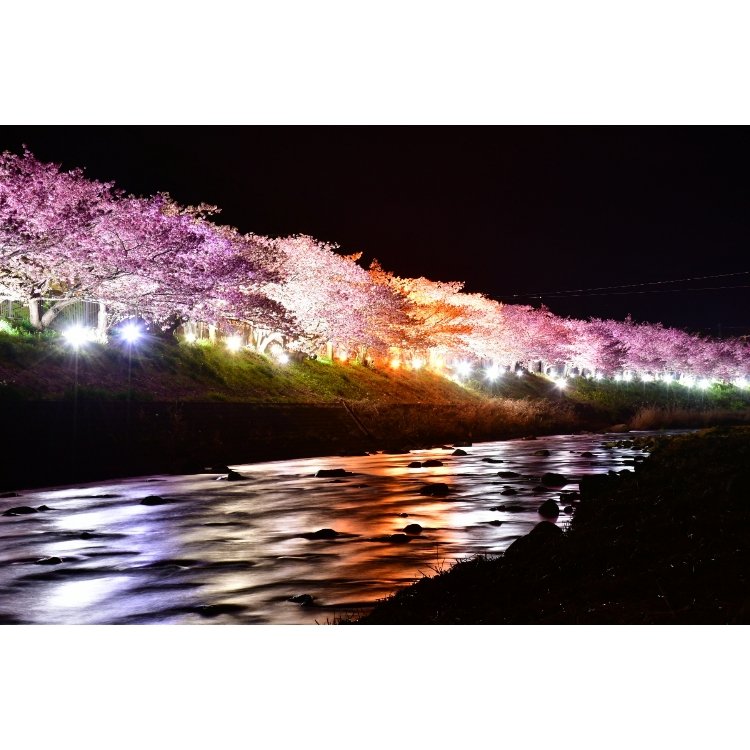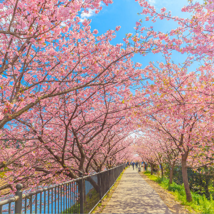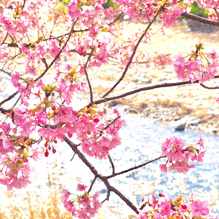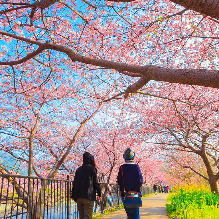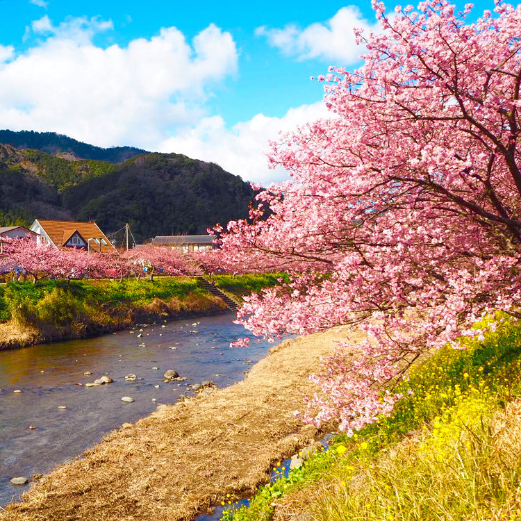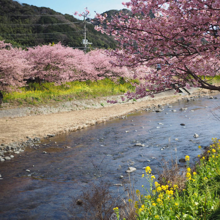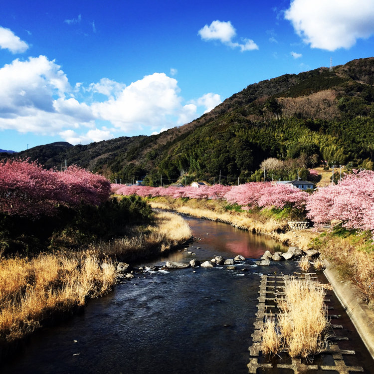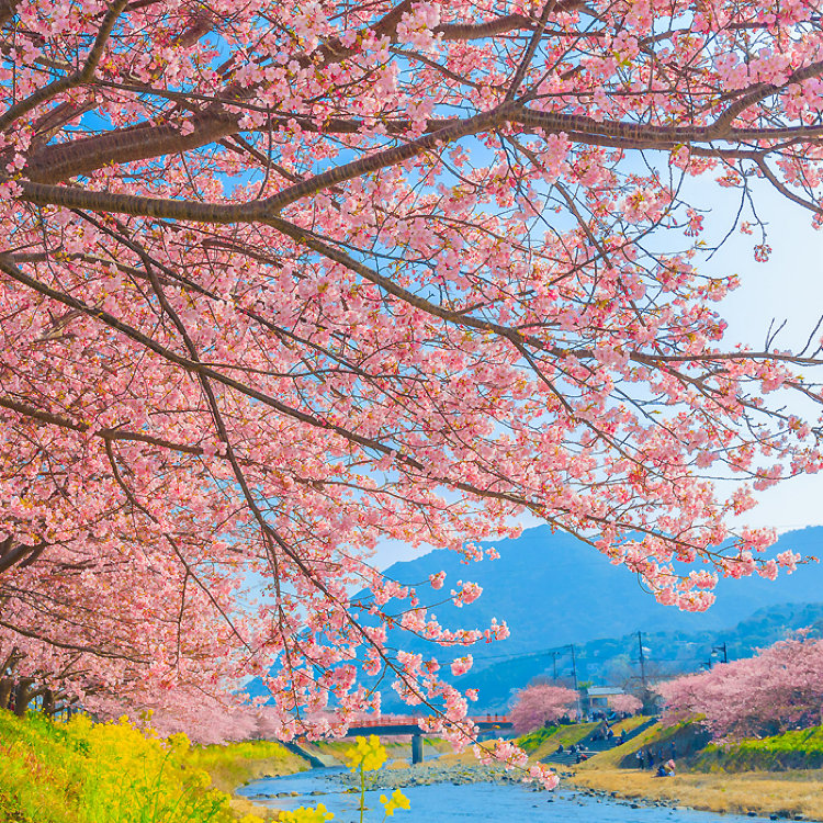 河津川沿いを埋め尽くす早咲きの華麗な桜