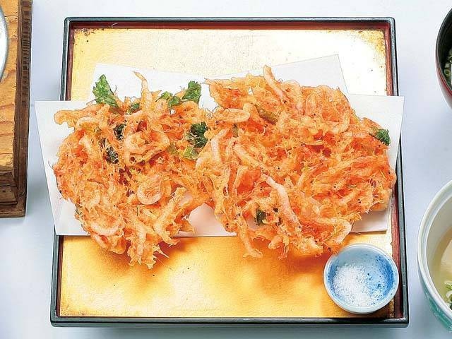 旧東海道沿いにたたずむ磯料理店。由比の名産である桜えびをふんだんに使ったメニューが豊富にそろう。なかでもかき揚げはこだわりの一品。カリッと香ばしく、サクサクとした食感がポイントだ。