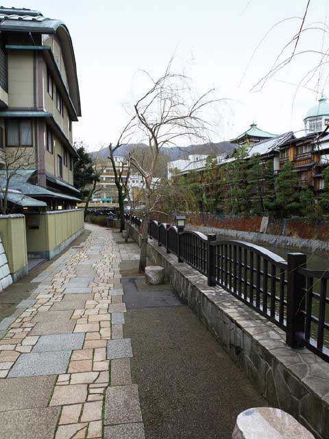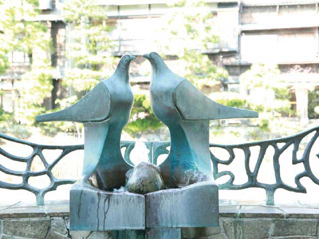 松川の南岸にある約1kmの遊歩道は桜や藤、柳が生い茂っており、散策路に最適。川の向かいには東海館が見える。伊東にゆかりのあるアーティストのモニュメントなどが見られるのも見どころだ。