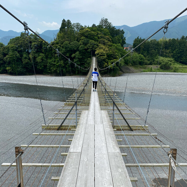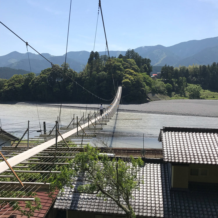 大井川鐵道とその沿線を楽しむ旅⑥ 1日目 塩郷の吊り橋 寸又峡温泉を後にして、行きは急いでいたのでやむなく通り過ぎた「塩郷の吊り橋」に寄りました。 この橋の長さは220メートル。 大井川に渡る吊り橋の中で一番長いものだそうです。 せっかくなので向こう岸まで渡ってみましたが、橋の真ん中あたりは結構揺れて怖かったです。 この橋を自転車で渡っていたというのですから驚きです。 橋の真下を線路が通っており、以前テレビでこの橋の上からSLが通過するのを見ていたのを思い出しました。 残念ながら今はSLの走っていない区間・・・。 線路の間近に大井川が流れていて素敵な場所なのだけど・・・。 やはり全線再開してほしいなと思いました。 主人も私も「全然怖くなーい。平気、平気〜」と言い合っていましたが、ふと「だるまさんが転んだ」の要領で振り返ったら、主人が必死になって橋の両端を持ちながら恐る恐る歩いていて、私が振り返った瞬間に慌てて手を離すところを見ちゃいました。ほんとは怖かったんだね😉 さぁ、そろそろ宿泊先の「川根温泉ホテル」へ向かいましょう。 #大井川鐵道 #電車旅 #静岡県 #塩郷の吊り橋 #フォーレなかかわね茶名館 #川根茶 #塩郷の吊り橋の上から #SLを見ていたのは #確か石原良純
