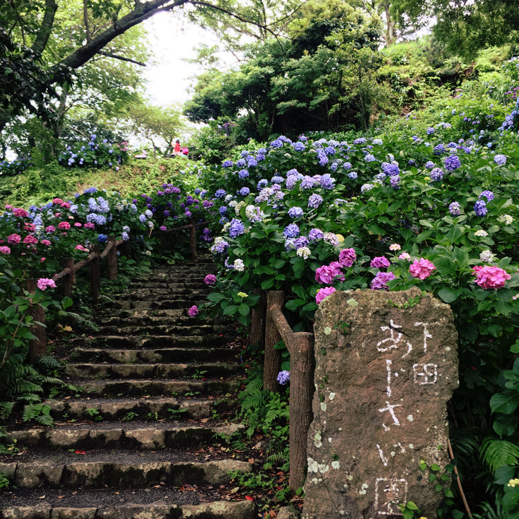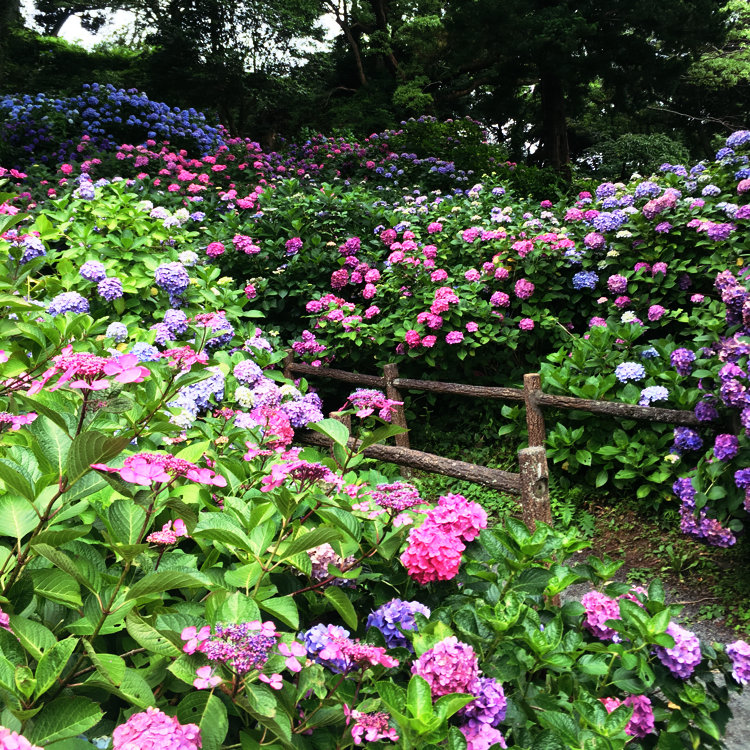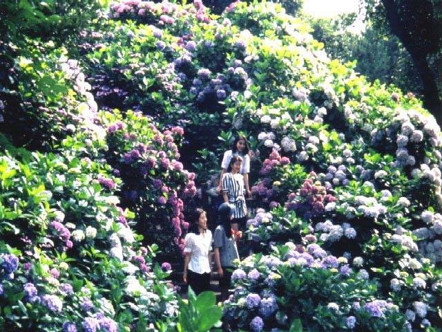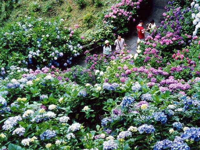 6月には遊歩道が彩り豊かなアジサイの小道に変身