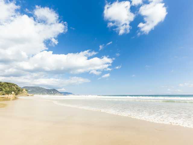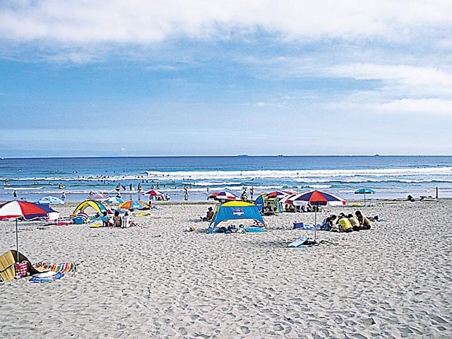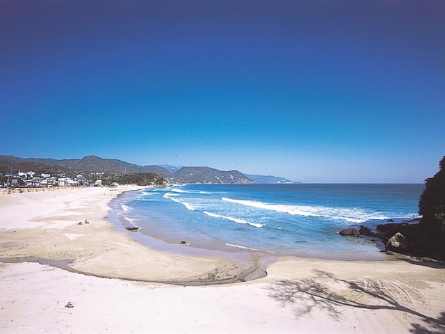 きれいな海岸が点在する伊豆でも、白砂が美しいことで有名な海岸。温暖な気候と豊かな自然に恵まれた白浜は、多くの海水浴客で賑わう。夏には様々なイベントが行われる。