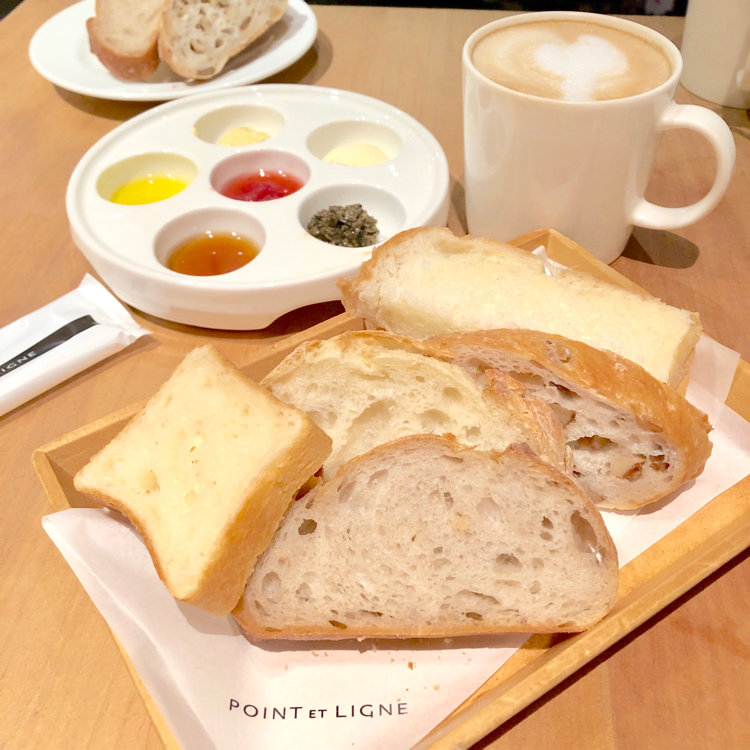 🥖🍞パン食べ放題 【ポワン エ リーニュ】新丸ビルB1 スープ・ドリンク・6種類のディップ付きで¥1080😋この日パンは6種類ありました。 * ブッフェはちょっと苦手ですが パンならいくらでも食べられるので パン食べ放題は大好きです😍😘😁❤️💕 * こちらは細長いアンビザーが有名なこだわりのパン屋さん。 * 「デュヌラルテ」「ダンディゾン」などパンの名店と同じ方がプロデュースしているので もちろん味は確かです。 * 美味しいパンが食べたくて 数日⁝( `ᾥ´ )⁝パンを我慢していたので 食欲爆発💥いっぱい食べました🐷🐷🐷💕👈 * 何も付けなくても美味しく トースターで焼いて食べるとまた食感が変わるので止まらなーい。 しかもディップがまた美味しい😋 残念ながらディップのオカワリは出来ません٩(×̯×)۶ 真ん中の季節のコンフィチュールは鎌倉ロミユニさんの😍‼️👍 オリーブオイル メープルシロップ アリゴ など いろどりも綺麗✨ * 私はパンに集中する為 スープセットにしましたが 他にもサラダやメインディッシュのセットもあります。 * オカワリパンは自分で取りにいくスタイルなので👍 くるみが入っているパンがとても美味しくて気にいっています(´✪ω✪`)♡ * 今日も大満足です(๑'ڡ'๑)୨♡ いつも大行列ですがお昼を外して訪れたせいか待ち時間ゼロでしたε-(´∀`;)ホッ平日はいいですね。 * #おいしい時間 #おでかけ日和 #新丸ビル #ポワン エ リーニュ #パン食べ放題 #パン #東京パン #ポワンエリーニュ
