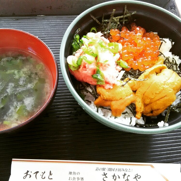 🍴静岡県 下田 道の駅開国下田みなと☀さかなや 再び、おはようございます🐔 ここから3日目です🌅と言うことで、「朝ごはんは伊豆の幸を食べよう!」のコーナーとなります👏 (ホントにコーナーにしてる🤣) 港に隣接したこの道の駅の中には何軒か食事をできるお店がありますが、さかなや(店名)さんで魚介料理を食べました。 それがコレ‼ 『脂金目漬け丼』です🍣✨ 金目鯛は通常煮付けでいただくことが多いですが、やはり産地でなくてはなかなか見ることの無い刺身があったので、三色丼など他でも食べられるものよりも…金目一択☝ お値段は1700円と少々張りますが、そのお味は…😋 皮目が湯引きされた肉厚の金目鯛、脂のノリも良くその身はプリプリと柔らかで、噛む毎に身の上品な甘さと脂の旨味、そして味をまとめ引き締める漬けの強くない醤油味が広がるじゃありませんか( *´艸`) 美味い‼脂も乗っているから、ワサビの辛さも中和されると、ワサビ醤油を掛けてパクパク…モグモグ… 朝から箸が進みます♡ ご飯は酢飯ではありません、個人的には良かったと思います☝ お米が少し柔らかかったです、これは少し残念。 この地でならではの金目鯛の漬け丼、満足しました( *´︶`*)✨ サーフィンで良く行った頃は朝からこの値段はやめるよな〜、あぁオトナっていいなぁ♪笑 (2019年1月5日撮影) #静岡 #下田 #伊豆 #南伊豆 #道の駅 #郷土料理 #金目鯛 #ケータイ写真 #ふたりっぷ伊豆2019冬