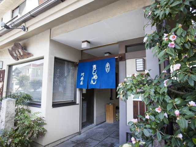 大正10(1921)年の創業以来、手こね・手延・手切の製法を貫く老舗の麺処。一晩寝かせて熟成させた生地で打つ麺は、なめらかでほどよい弾力がある。その日の気温や湿度によって塩加減などを調節するのも、変わらぬ味の秘訣だ。
