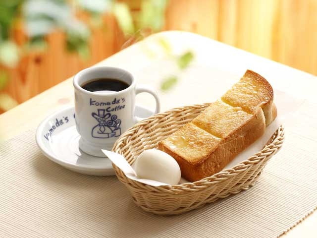 名古屋を中心に全国に約770店舗をもつ珈琲店。木のぬくもり漂う落ち着いた雰囲気で、名物のシロノワールをコーヒーとともに味わえる。開店から11時まではドリンク注文でモーニングサービスあり。