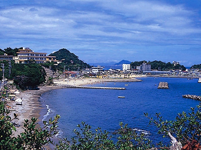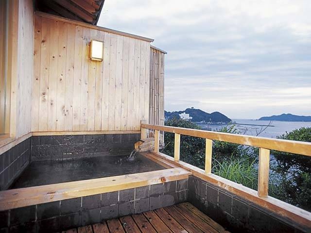 答志島の高台にある温泉旅館。紺碧の海を見渡す展望露天風呂や貸切露天風呂が好評だ。海の幸に恵まれた答志島ならではの新鮮な食材を使った料理も存分に楽しみたい。