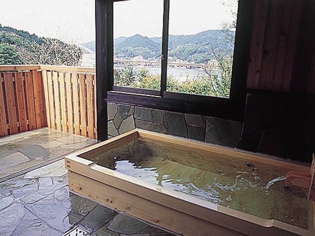 パールロード沿いに立つ和風旅館で、館内は木のぬくもりに満ち、昔なつかしい囲炉裏もある。「炭火焼き会席」の料理や半露天の温泉貸切風呂目当ての常連客も多い。