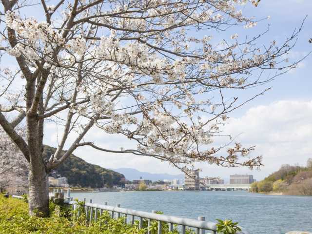 石山寺と瀬田川流域の桜