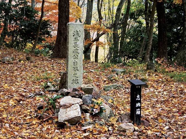 戦国武将浅井長政と妻お市の方の悲話の舞台となった城跡。浅井家の本拠地だった小谷城は豊臣秀吉によって城楼、寺院などが長浜に移され、今は石垣や土塁が残るのみとなっている。