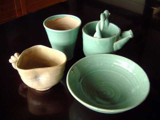 カイツブリのワンポイントがかわいい水茎焼。製造販売を行っている陶芸の里で、作陶体験が楽しめる。気軽に入れるカフェレストランも併設されていて、のんびりできる。