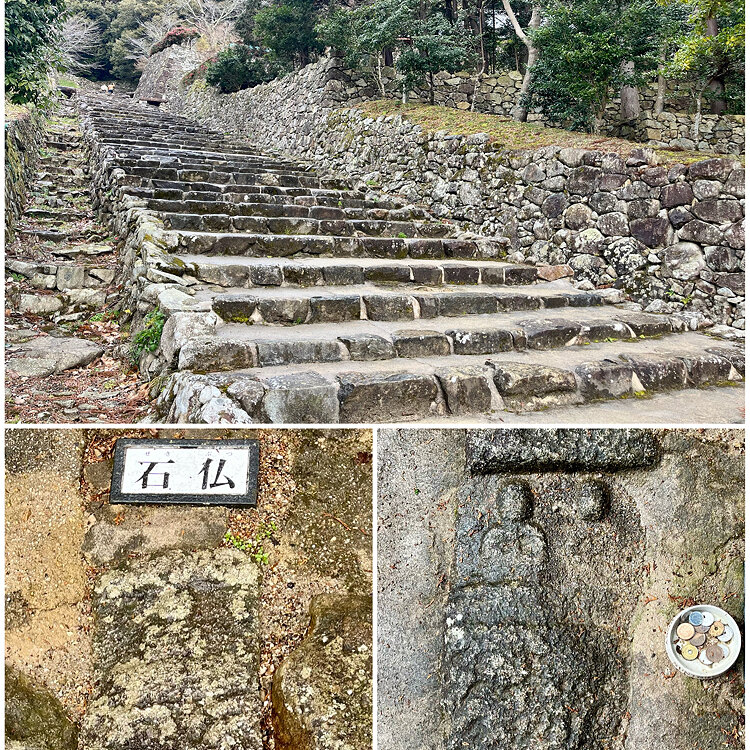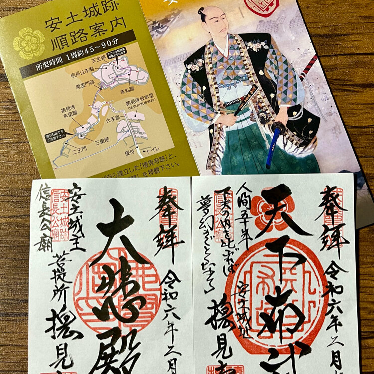 安土城跡🏯 石垣しか残っていないのになあ、と乗り気ではありませんでしたが、思った以上に見応えがありました! まっすぐ伸びていく石段😳 石段の両脇には前田利家邸跡 羽柴秀吉邸跡 徳川家康邸跡などが並び、石段には3箇所ほど石仏がありました。 石仏は築城の際に大手道の石材として使われたものです。築城する時に墓石や石仏も使ったと聞いたことはありましたが、しっかり仏様の形の残った石を石段に使うとは💦 うっかり踏んでしまう場所ですが、「石仏」と表示がありお賽銭入れも置いてあります。 石段は400段ほどあり急で段差もまばらでかなり過酷😱 杖をお借りしてよかった! 進んでいくと本丸跡や信長公本廟、そして天守閣跡。こちらからは木の合間から琵琶湖が眺められました✨ 六階の天守からはもっといい眺めだったのでしょうね! ここで終わりではなく、少し下ってまた登って、信長公の菩提寺である摠見寺本堂跡や三重塔、仁王門へ回り、再び羽柴秀吉邸跡へたどり着きます。 かつて、信長公が宣教師を送るために安土城まわりに提灯や松明で、今で言うライトアップしたという有名な話。 今回歩いた道にも灯りがともされていたのかな、と想像するのも楽しかったです。 摠見寺の御朱印も頂きました😊 #冬の旅 #私のことりっぷ旅 #安土城 #安土城跡 #安土城址 #摠見寺 #織田信長 #琵琶湖 #近江八幡 #滋賀