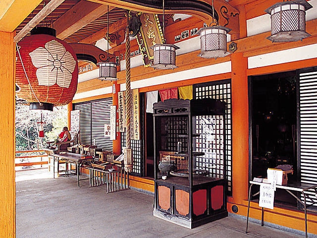 海津大崎にある真言宗の古寺。大崎観音の名で親しまれている。本堂右手にある阿弥陀堂の天井は「安土の血天井」で知られ、安土城の遺構を利用して建てられたと伝わる。