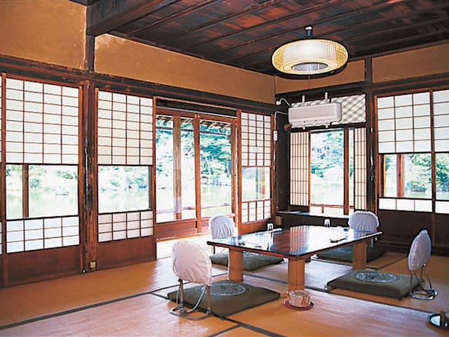 彦根城を望む玄宮園の池端に建つ茅葺き屋根の料理旅館。食事のみの利用もできる。築300年の建物で、玄宮園を眺めながら味わう湖魚中心の懐石料理は格別。