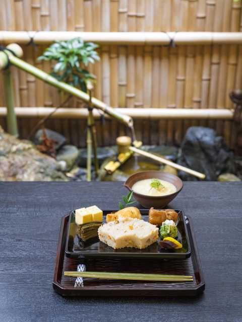 自然と歴史を伝える緑豊かな東山に位置。コンテンポラリージャパニーズをコンセプトにデザインの館内