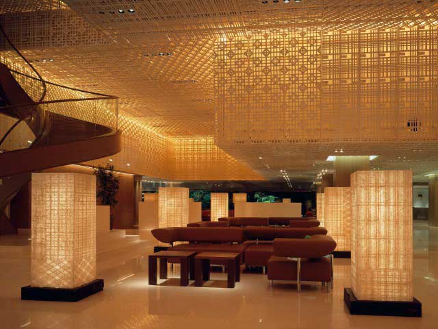 自然と歴史を伝える緑豊かな東山に位置。コンテンポラリージャパニーズをコンセプトにデザインの館内