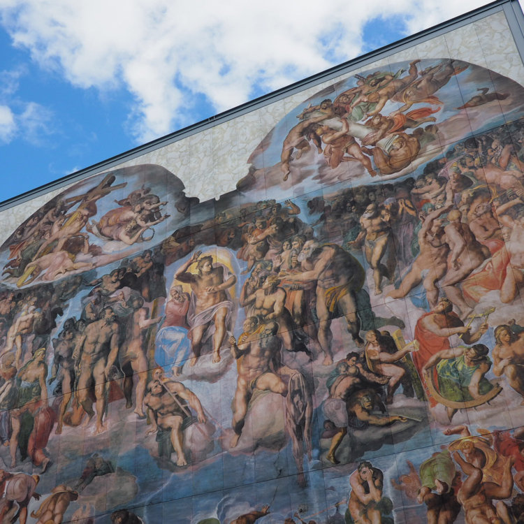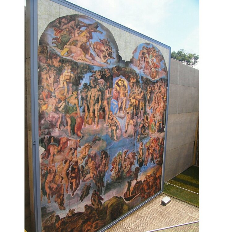 近頃話題の『京都府立陶板名画の庭』 パンでお腹がいっぱいになった所で目指したのは(信号を渡っただけですが)植物園の真隣りにある『京都府立陶板名画の庭』です😊 * 名画の美しさをそのままに再現された陶板画を安藤忠雄氏設計の建物と青空と一緒にみられる贅沢な空間です😊 建てられてから、もう28年経ちますが最近なSNSで 『京都に行ったらここに行け』とか『北山デートおススメスポット』等のキャチフレーズを見かけるようになり✨ 植物園に行く前に寄ってみることにしました😊 * 1番目を引くのが、巨大な陶板画ミケランジェロ作の 「最後の審判』です。ほぼ原寸とのことで、どれくらい大きいかと言えば2枚目の写真でご確認を。 その場にいらっしゃった女性の後ろ姿をお借りしました。 この前でお洒落な写真を撮るのがイマドキのようです😊 * 3枚目のモネの「睡蓮・朝」は入場しなくても見る事ができます 4枚目レオナルドダヴィンチ「最後の晩餐」の前では 女の子は2人楽しそうに自撮り写真を撮られてました😊 ルノアール、ゴッホ、スーラの作品もありました🖼 * フォトジェニックな写真は撮れませんでしたが、入場料100円で自然光の中、安藤忠雄氏設計の演出でアート作品が見られる素敵なスポットでした😊🖼 #京都観光 #休日ドライブ #美術鑑賞 #休日ドライブ #秋いろとりどり #Myことりっぷ