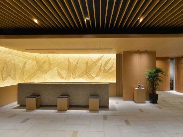 自然と歴史を伝える緑豊かな東山に位置。コンテンポラリージャパニーズをコンセプトにデザインの館内