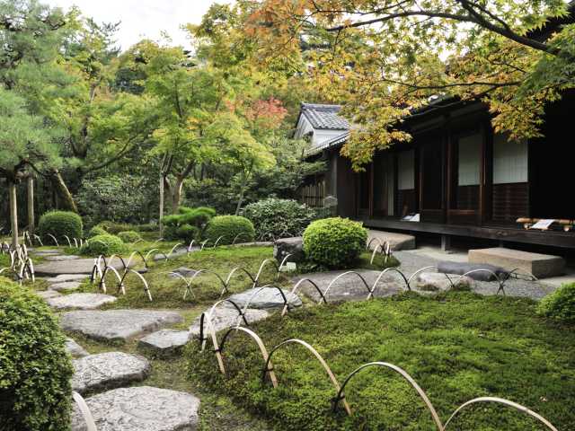自然と歴史を伝える緑豊かな東山に位置。コンテンポラリージャパニーズをコンセプトにデザインの館内