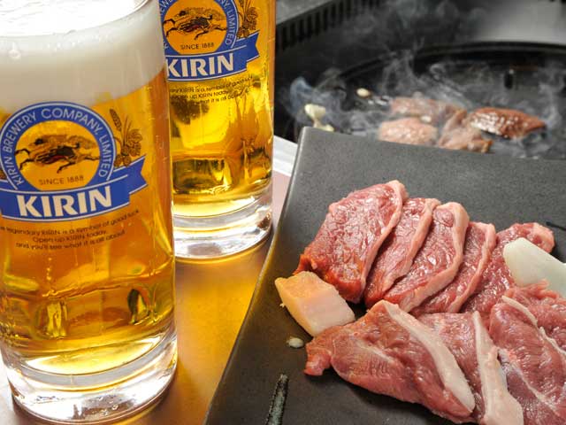 ジンギスカンは「タレ仕込み」、「生ラム」の2種類から選べる。キリン千歳工場から直送される樽詰め生ビールも好評。ジンギスカン食べ放題と本たらば蟹焼き食べ放題(100分)など、海鮮が付いたコースもおすすめ。
