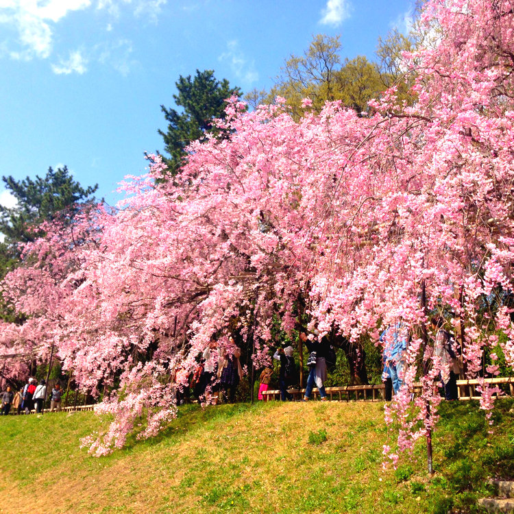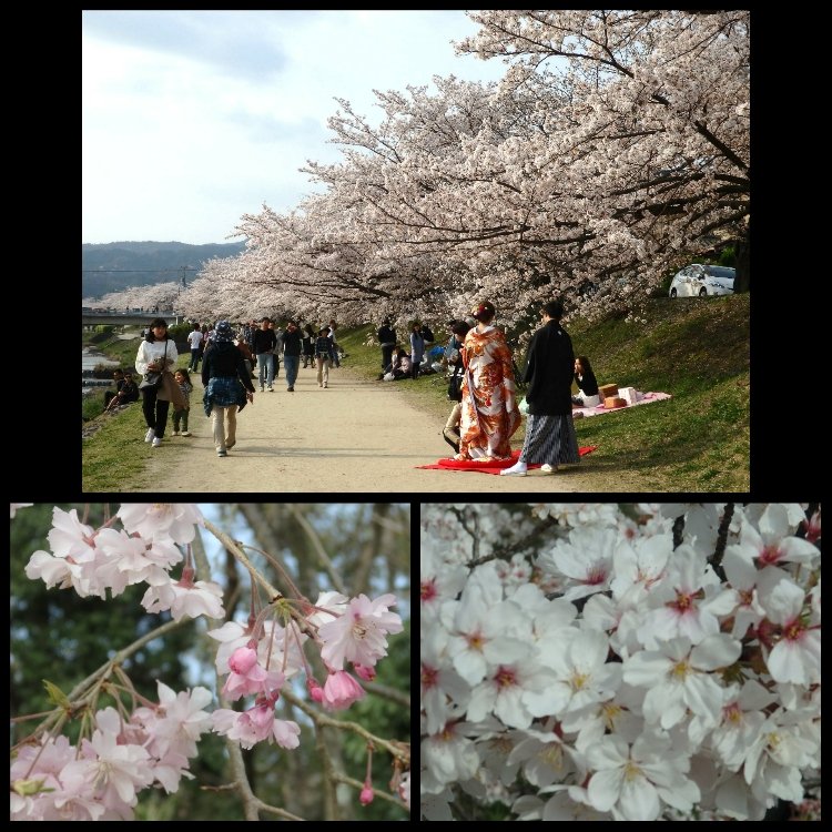北大路通りから北上し、北山通りまで続く鴨川畔の道。しだれ桜の見頃は遅く、4月中頃から下旬にかけて美しい。桜のシーズンはお茶席が設けられることもある。