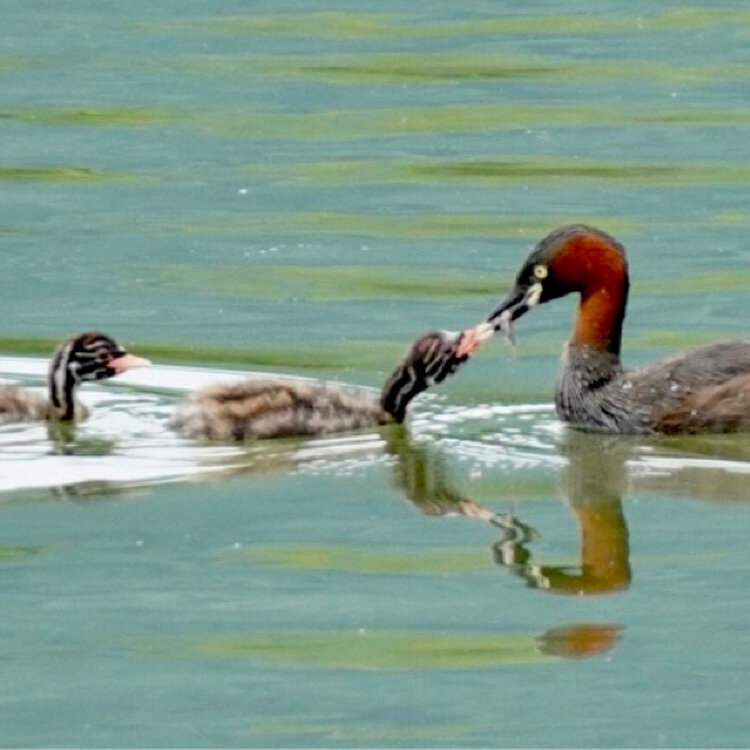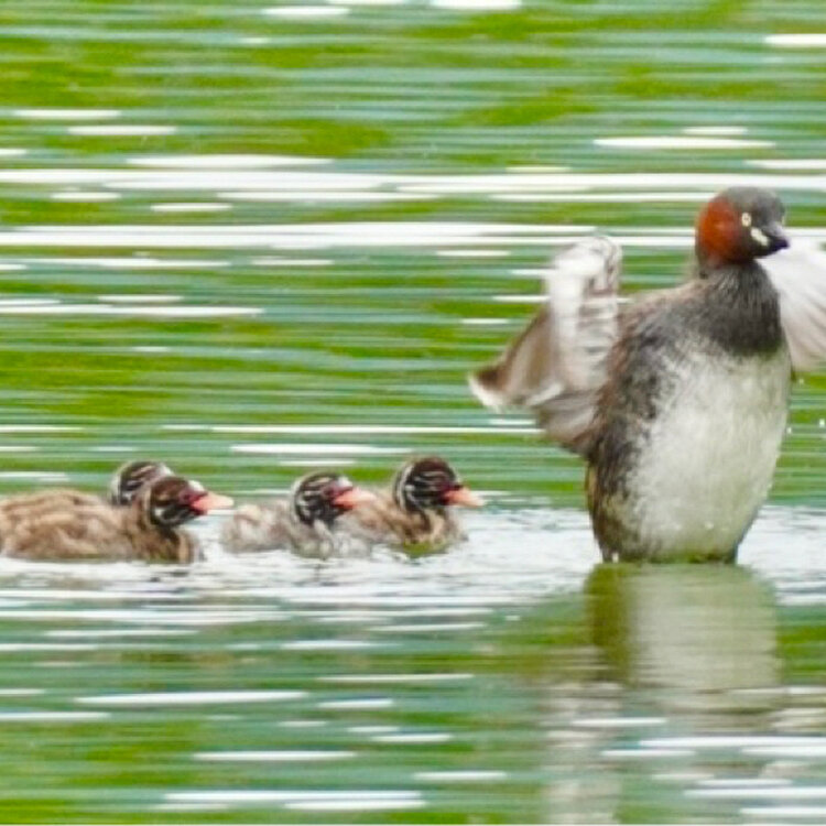 大覚寺 大沢池 カイツブリの親子🦤 * 京都新聞にも掲載されていましたが、大覚寺の横にある大沢池で、カイツブリの雛が4羽孵りました😊 カイツブリは、雛が小さいうちは、背中に乗せて育児をするので、その姿が見たくて尋ねました😊 * 名勝と言われるほど立派な大きな池で、大覚寺のお堂に入るのとは別に300円の入園料がかかります。 どの辺りで見られるかも解らずに進んだ先のちょうど池の真ん中辺りに親子でいてくれました😊 * カイツブリは、カルガモやマガモと違って、お父さんお母さん揃っての育児です♪ お父さんが(多分どちらか見分けがつかないので)さっと 餌を運んできて、雛にせっせと与えていました😊 背中に乗るかな乗るかな〜と見ていましたが、乗りそうで乗らない💧もう背中に乗せてもらう時期は卒業したようでした😊 それでも、お母さんにひっついて動く姿が可愛くて💗 お母さんが少し離れたらピーピー鳴いて🐥 4枚目の丸した子のようにマンガみたいな顔で、本当に見ていて飽きません😊 しばらくしたら、お母さんも餌を獲り始めて🐟それを見ていたヒナたちも池に潜るそぶりを見せ始めて🐟成長を感じる事も出来ました😊✨ すぐに、お父さんやお母さんのように潜水上手なカイツブリになれそうでした🦤✨ * 天気が下り坂だったので、池の散策はお預けとなりました🥲 雛が背中に乗っている姿は、#カイツブリ で過去のことりっぷユーザーさんの投稿で見られました😊 #野鳥 #野鳥図鑑 #カイツブリ #アートみたいな景色 #Myことりっぷ #大沢池